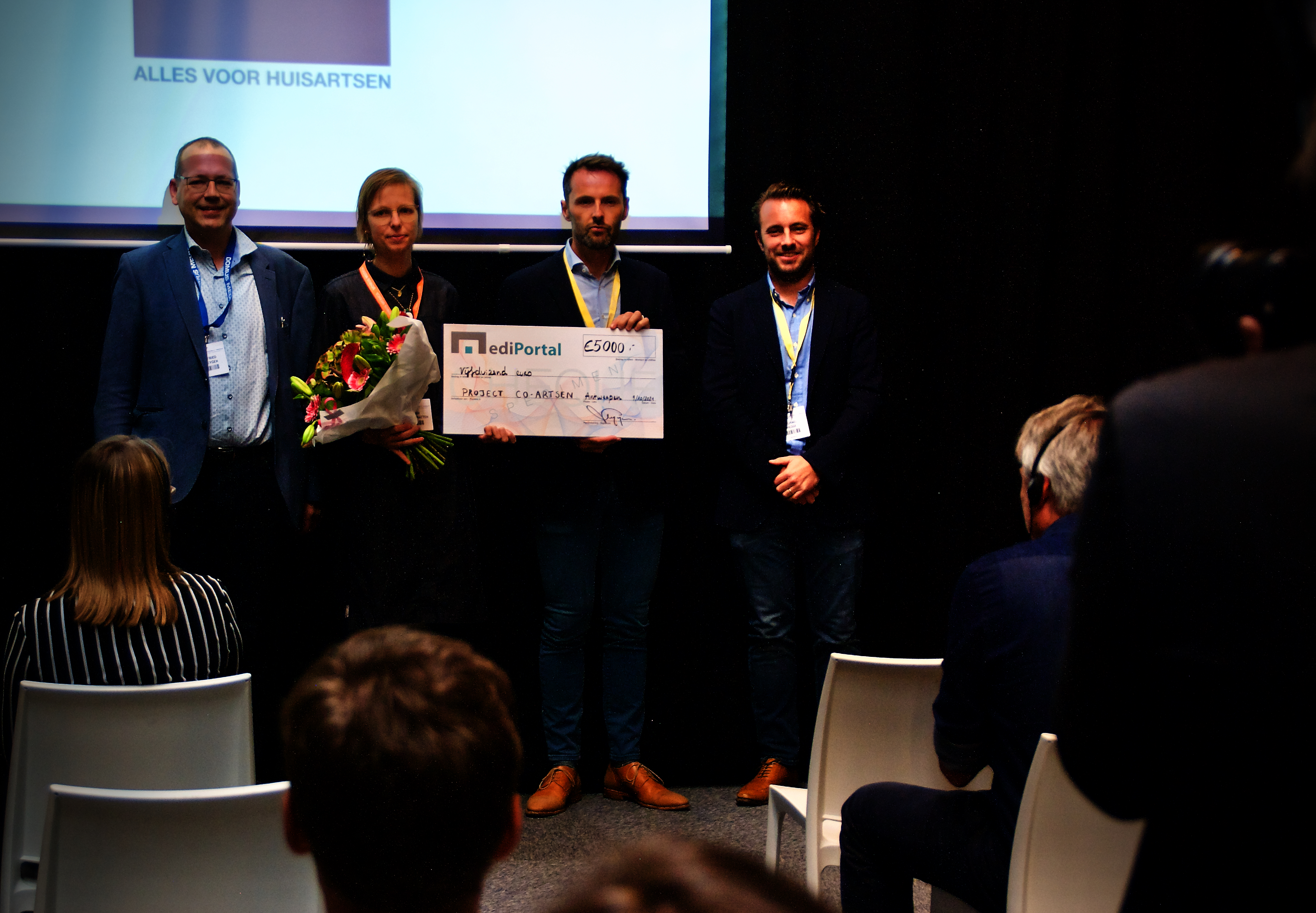 De prijs zelf werd symbolisch uitgereikt aan het project van de co-artsen. Deze prijs, ter waarde van 5000 euro en geschonken door MediPortal, werd in ontvangst genomen door dr. Sarah Verherstraeten, huisarts en voortrekker van dit project. “Terwijl wij voor onze patiënten zorgen, zorgen zij voor ons. En zoals we allemaal weten, kun je maar goed voor een ander zorgen als je ook goed voor jezelf zorgt”, aldus dr. Roel Van Giel.