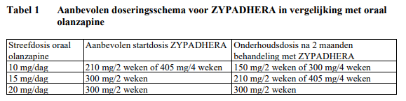 Aanbevolen doseringsschema voor Zypadhera in vergelijking met oraal olanzapine