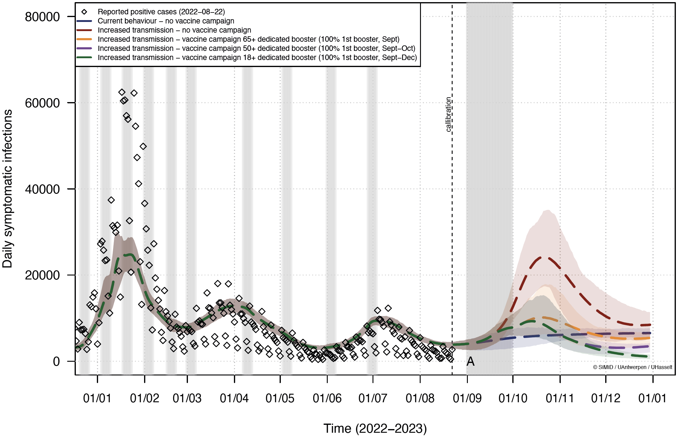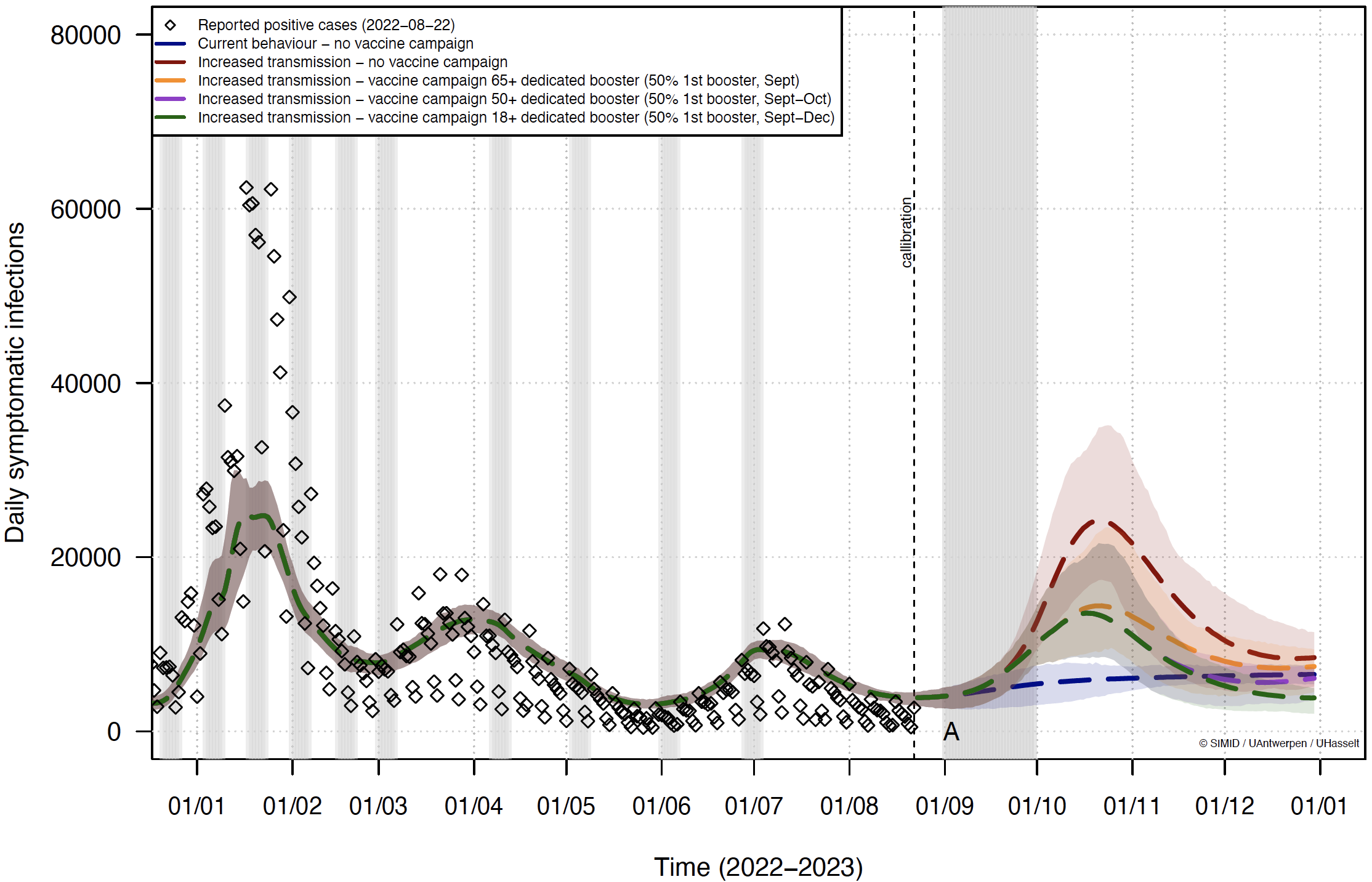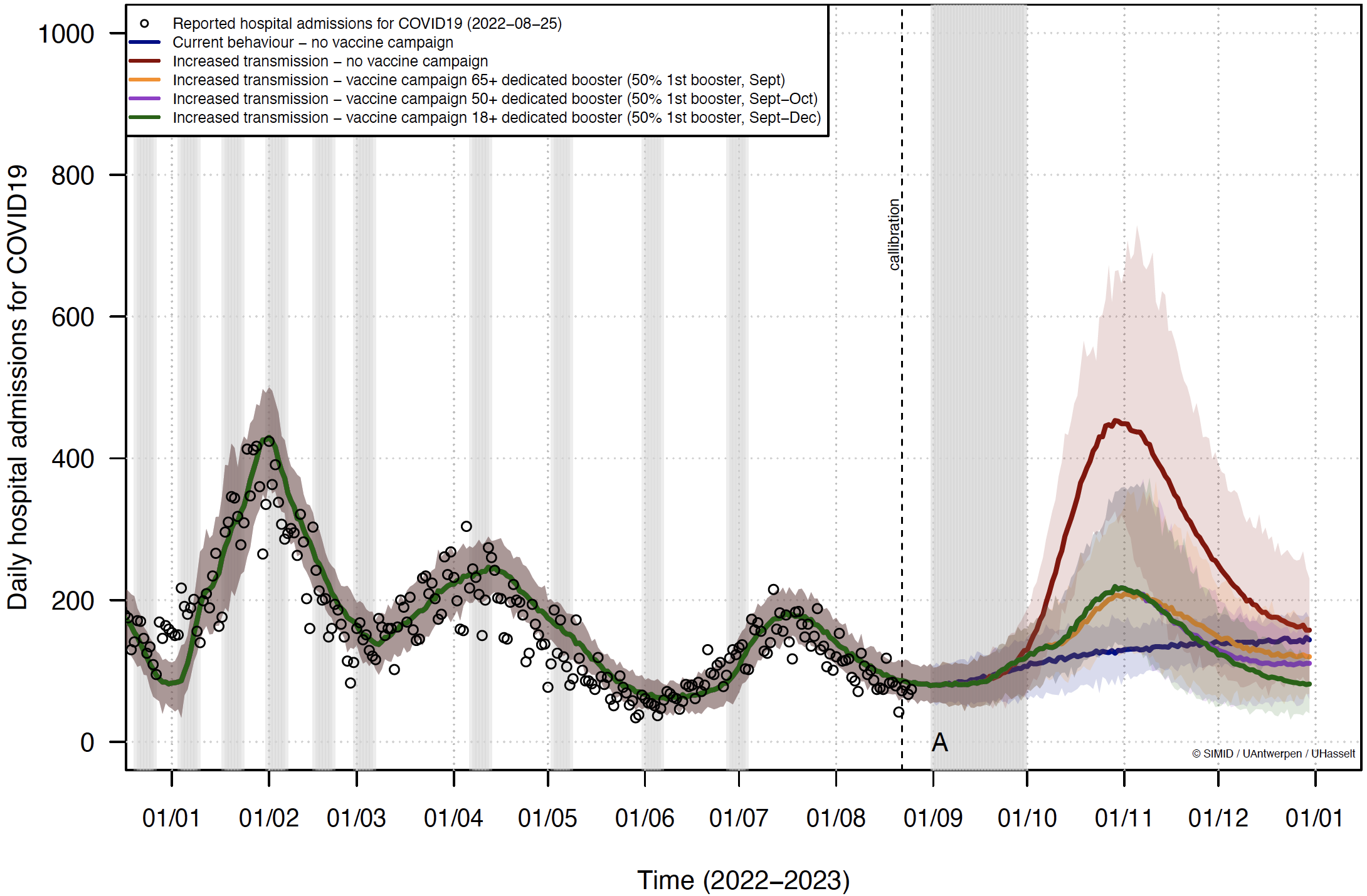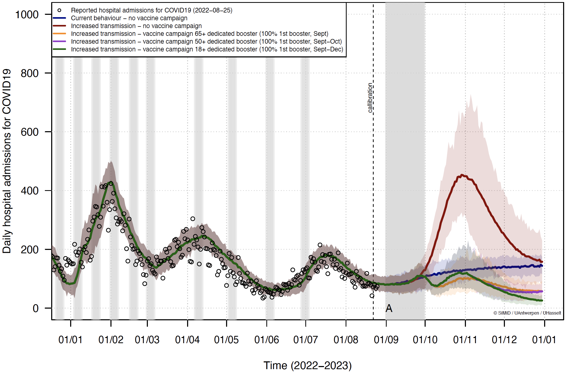 - Faes C, Willem L, Franco N, Hens N, Beutels P, Abrams S. SARS-CoV-2 variants and vaccination in Belgium. Modelling results by the SIMID consortium. Technical note – not peer reviewed – v20220831.