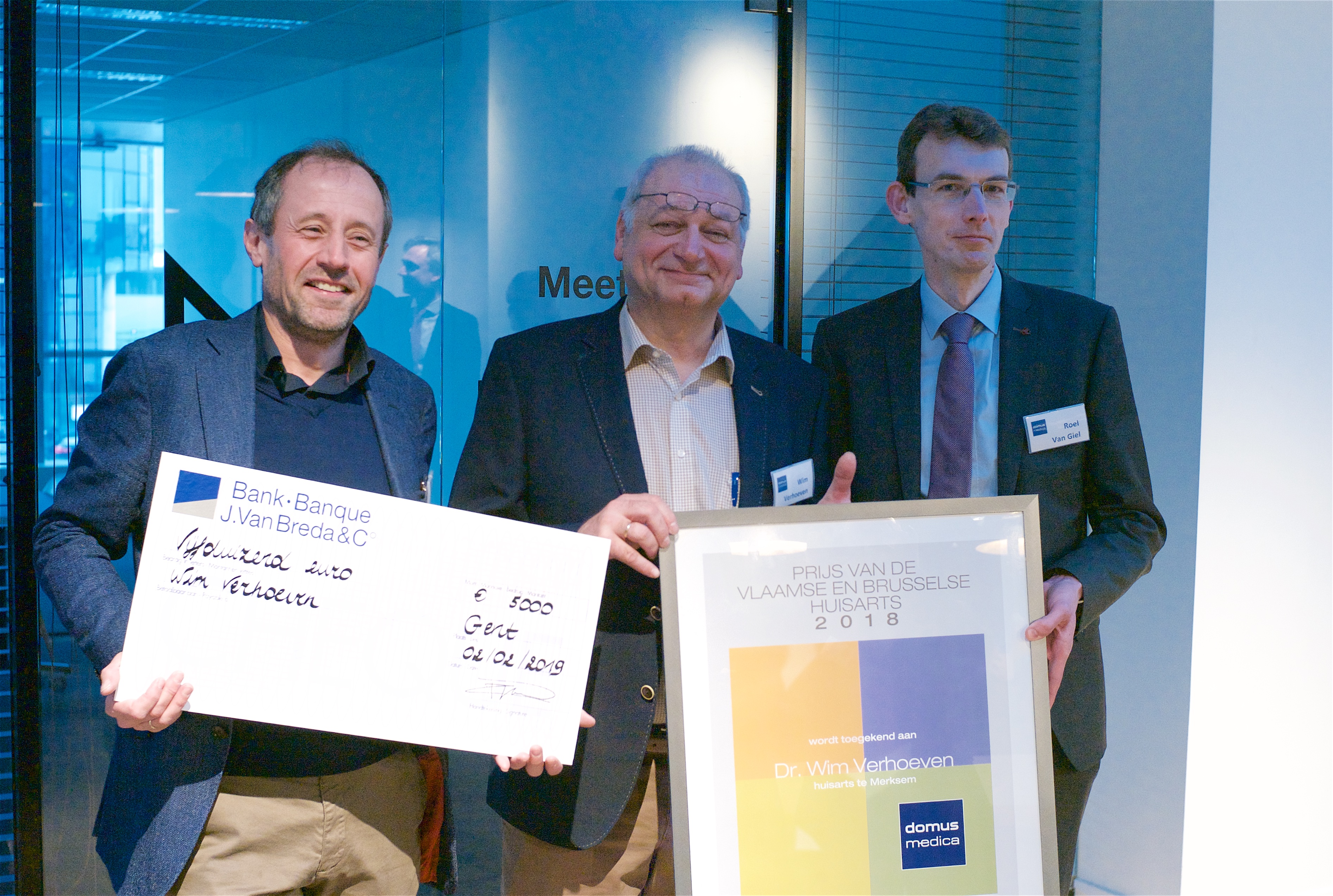 Tot slot was er op deze Jaaropening ook heel wat reden tot feest, met de jaarlijkse uitreiking van de Prijs van de Vlaamse en Brusselse huisarts. Dr. Wim Verhoeven mocht de prijs in ontvangst nemen na het laudatio door dr. Tim Vertongen, voorzitter kring Noord Antwerpen en Gert Merckx, verantwoordelijke kennisdomein Kringen.