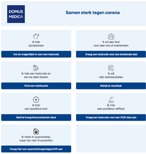 Domus Medica bracht de belangrijkste tools voor patiënten samen op een overzichtelijke webpagina: www.mijncoronatest.be.