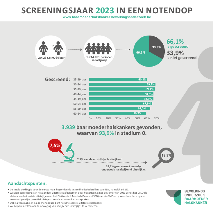 Onderstaande Infographic geeft een weergave voor baarmoederhalskankerscreening in 2023 in Vlaanderen:
