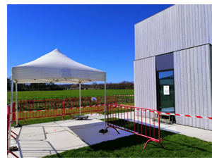 Op zaterdagmiddag krijg ik instructies toegestuurd van de organisatie: ik word een kwartier op voorhand verwacht om me volledig te kleden in beschermende kledij in een speciale kleedkamer en vandaar zal ik door een medewerker van Stad Antwerpen begeleid worden naar mijn 'kabinet'. Dat kabinet is uiteraard volledig gereinigd; vanaf dat ik daar binnenstap, kan ik dus niet meer naar het toilet, geen kleding meer wisselen en niet eten of drinken. Ik fiets door de koude ochtendlucht naar de triagepost: dit blijkt uit een drietal gebouwen te bestaan met zicht op het ziekenhuis en de omliggende weilanden.