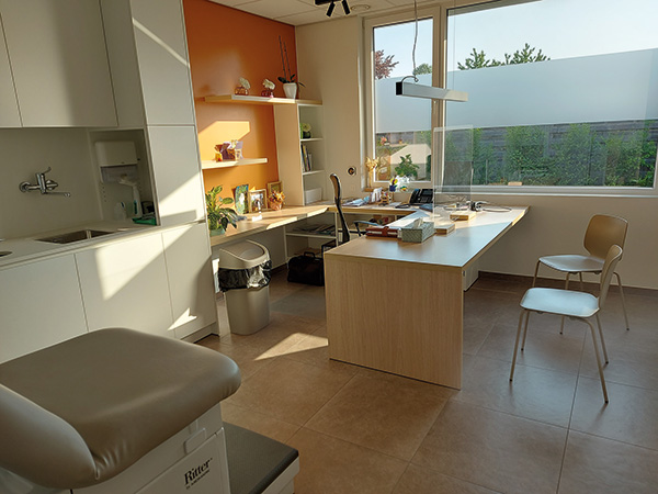 Onze praktijk is gebouwd in 2020-2021. Wij deden op voorhand een uitgebreide research naar richtlijnen en leidraden voor de praktijk. Dit heeft geresulteerd in een modern en efficiënt ingerichte praktijk. We kozen voor een centraal gelegen locatie, zijn vlot bereikbaar met de bus en hebben een fietsparking. Er is een laadpaal voor elektrische wagens.